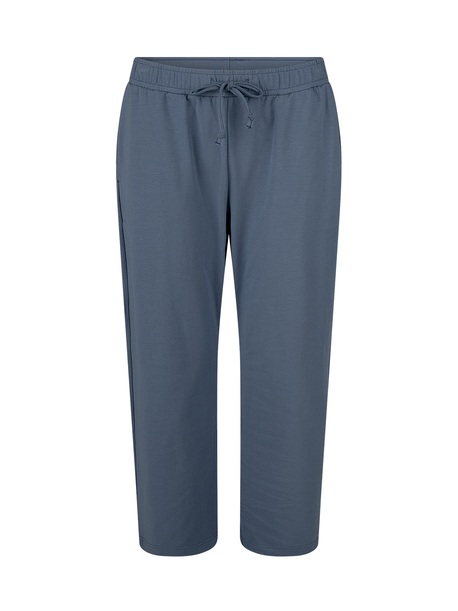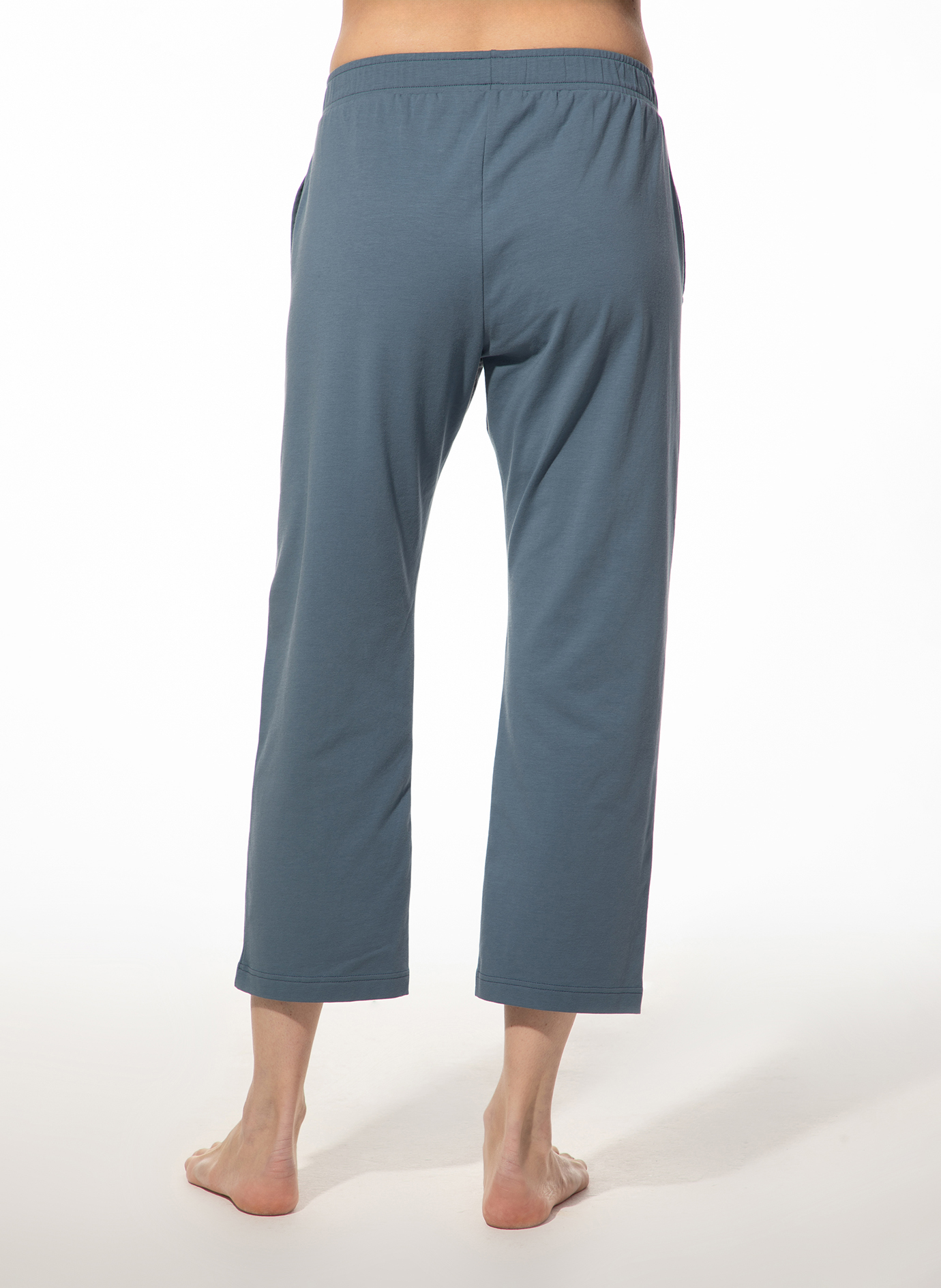 Diese 7/8-Hose von SHORT STORIES aus GOTS-zertifizierter Bio-Baumwolle für Damen vereint nachhaltigen Komfort mit modernem Design. Der weiche, elastische Stoff schmiegt sich sanft an die Haut und bietet optimale Bewegungsfreiheit. Der lockere Schnitt und die verkürzte Länge verleihen einen lässigen, entspannten Look - ideal für gemütliche Stunden zu Hause, leichte Aktivitäten oder stilvolle Alltagsoutfits. Der elastische Bund mit Kordelzug sorgt für bequemen Sitz und individuelle Anpassung. In einem zeitlosen Blauton gehalten, lässt sich die Hose vielseitig kombinieren. Ein hochwertiges Lieblingsstück, das Komfort, Nachhaltigkeit und Stil harmonisch verbindet.