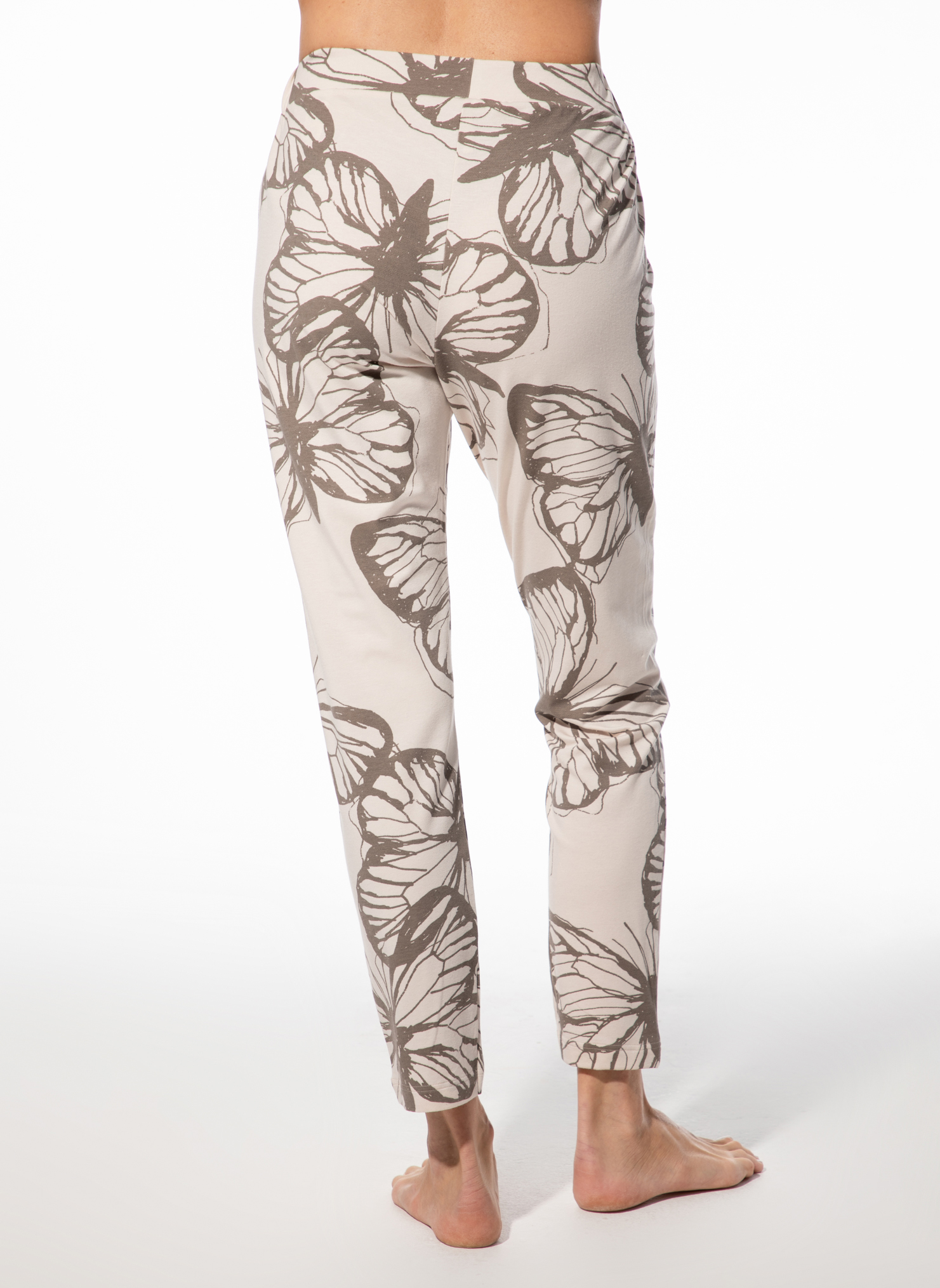 Die Damen-Schlafhose von SHORT STORIES überzeugt mit einem geraden, modernen Schnitt (straight fit) und einem besonders weichen, elastischen Materialmix aus 47 % Baumwolle, 47 % Modal und Elasthan. Der separat gearbeitete Bund mit eingearbeitetem Gummiband passt sich flexibel an und sorgt für komfortablen Sitz. Das auffällige Allover-Muster mit großen, gezeichneten Schmetterlingen in Braun auf hellem Grund verleiht der Hose einen femininen, stilvollen Look und macht jede Nacht zu entspannten Wohlfühlmomenten.