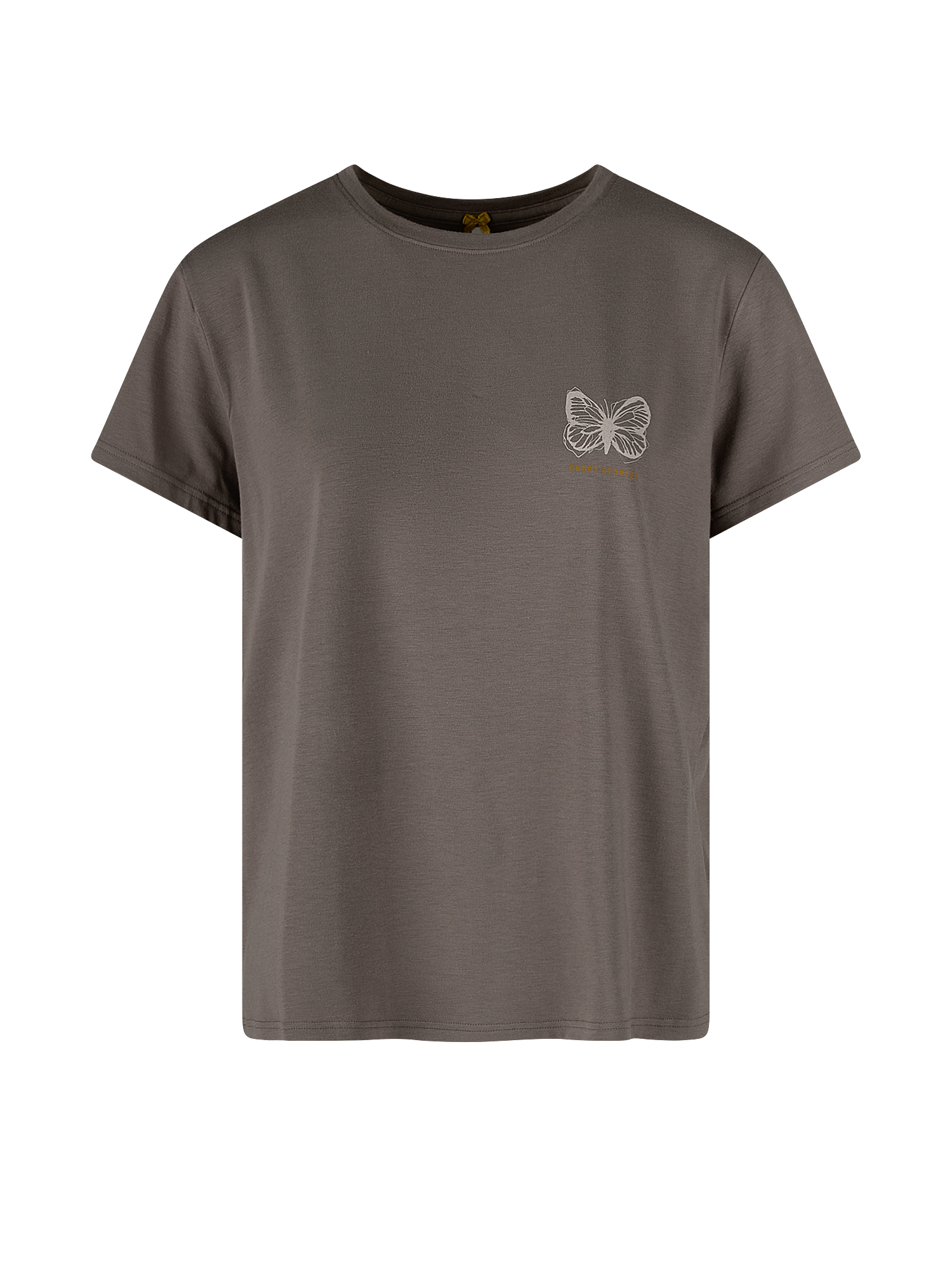 Damen-Schlafshirt kurzarm braun Schmetterling