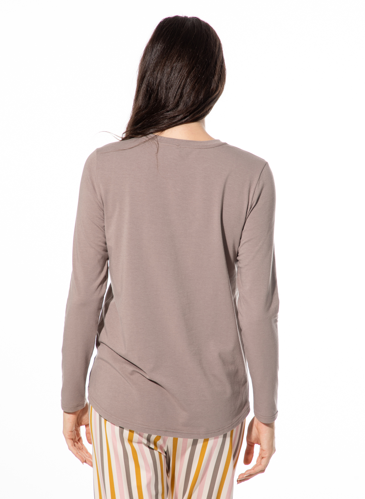 Damen-Schlafshirt langarm braun