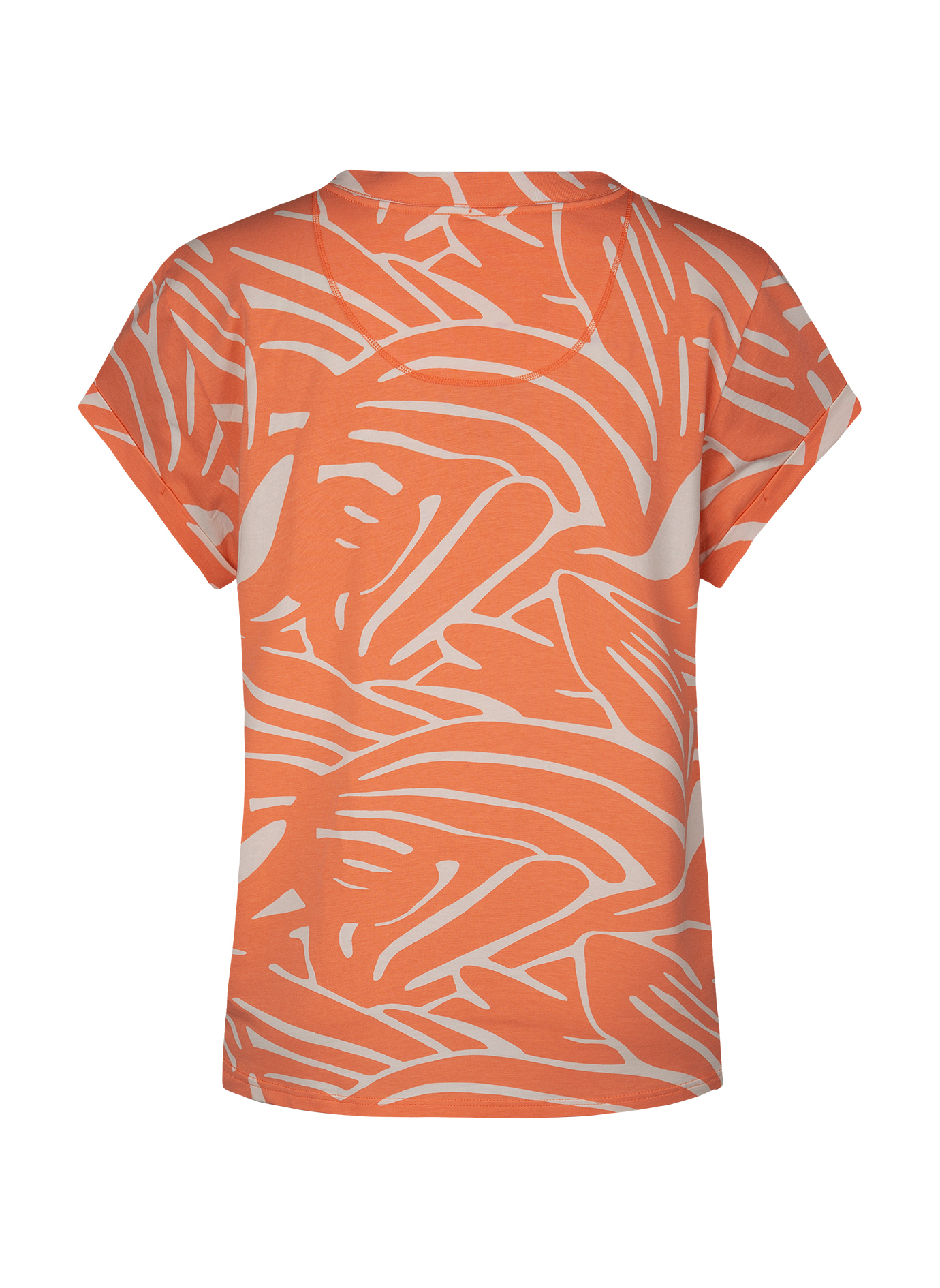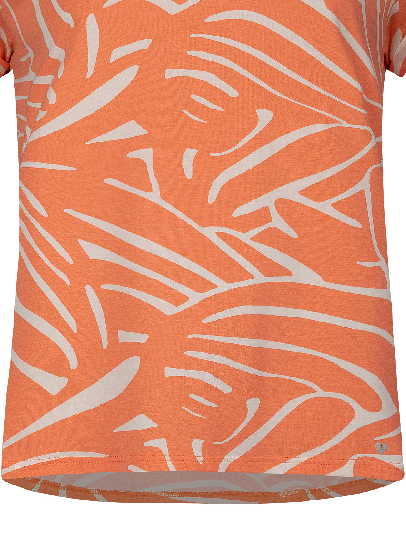 Lässiges Damen T-Shirt von Short Stories mit einem großflächigen abstrakten Blätterprint in Orange.